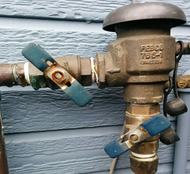 This device is installed to prevent reverse flow of contaminated water back into potable water supply. This device is required if you have a sprinkle system or any other equipment that can potentially be a cause of contamination. Many jurisdictions require yearly testing and maintenance to ensure they are functioning correctly.